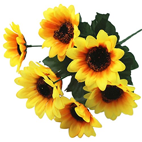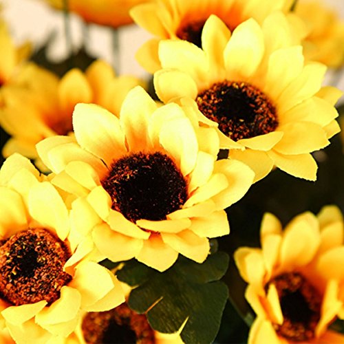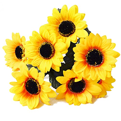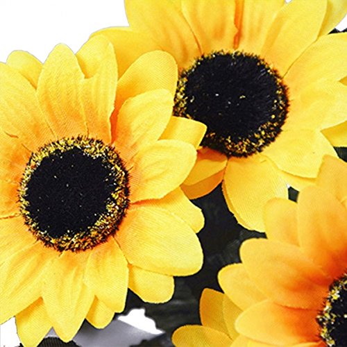 These artificial sunflowers are made of silk with injection molding which are healthy and environmental.They are not easy to fade or fall. All flowers are look beautiful and vivid.