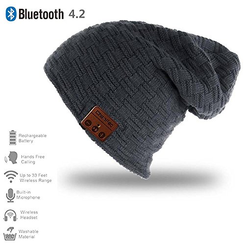 HONGYU Bluetooth Beanie Hat Winter Warm Soft Knit Hat Cap with Wireless Headphone Stereo Speaker Mic Hands Free Compatible with Iphone Android Cell Phones Support Memory Cards - Deep gray