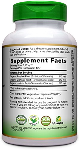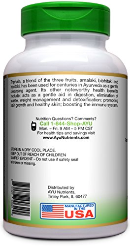 Studio : Ayu Nutrients Publisher : Ayu Nutrients Binding : Health and Beauty Product Description Triphala, a blend of the the three fruits, amalaki, haritaki and bibhitaki, has been used for centuries in Ayurveda as a gentle laxative. Its other noteworthy health benefits include: acting as a gentle aid in digestion, elimination, and detoxification; promoting hair growth and healthy skin; boosting the immune system. ? Anti-Oxidant ? Supports Digestion ? Helps with Detoxification ? Improves the Health of Your Skin 0