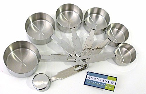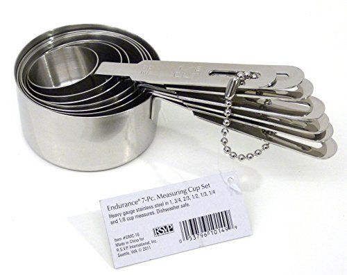 RSVP Endurance Superior Quality 18/8 Stainless Steel Measuring Cups with Long Handles, Set of 7 Most Popular Sizes: 1-cup, 3/4-cup, 2/3-cup, 1/2-cup, 1/3-cup, 1/4-cup, 1/8-cup
