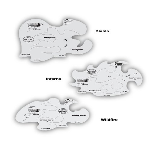 Artool Freehand Airbrush Templates are must-have tools in an air brusher’s arsenal of art materials. Delineate shapes by matching the contours of the Freehand Airbrush Templates with the subject matter in your artwork. Simply rotate or flip-flop the various Artool Template patterns to find the shapes which work best for hard-edge contours, or slightly raise templates to create softer-edge contours. The broad range of shapes, textures and themes is a never-ending journey for Artool to meet the needs of fine artists, illustrators, custom automotive artists and hobby enthusiasts everywhere. Many of the Artool Templates are created by well known airbrush artists, such as Craig Fraser, Mike Lavallee, Dennis Mathewson, Michael Cacy, Gerald Mendez, Ryan “Ryno” Templeton and many other acclaimed artists which have appeared on television programs, written step-by-step airbrushing books and how-to articles in national and international art publications. Nearly all of the Artool Templates are Solvent Proof and can be easily used with water-based or solvent-based paints which can be cleaned for repeated use again and again #1 Templates in Airbrushing has remained Artool’s undisputed tagline for the past 20 years. Artool Freehand Airbrush Templates are routinely used and enthusiastically endorsed by artists around the world.Feature