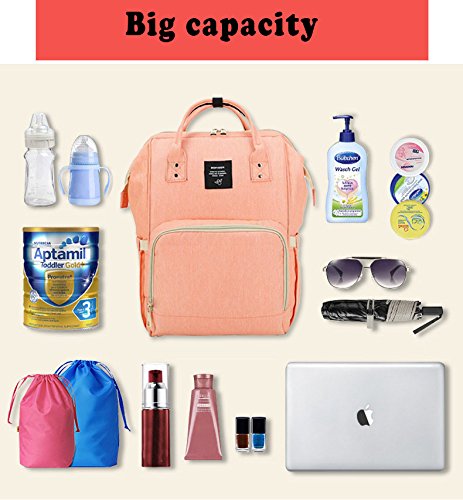 Einhand-kontrollierbare Baby-Windel-Tasche: Der Windel-Rucksack kann weit geoffnet sein, so dass es sehr einfach zu fullen. Die Griffe an der Oberseite erlauben Ihnen, es als eine Windel-Tasche zu tragen und seine integrierten Kinderwagen-Bugel konnen sie leicht an Ihren Spazierganger anpassen.
