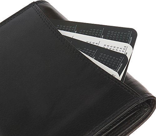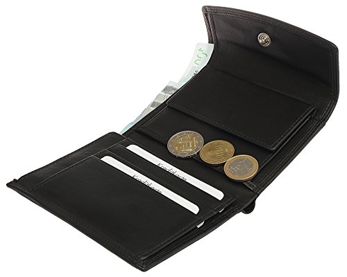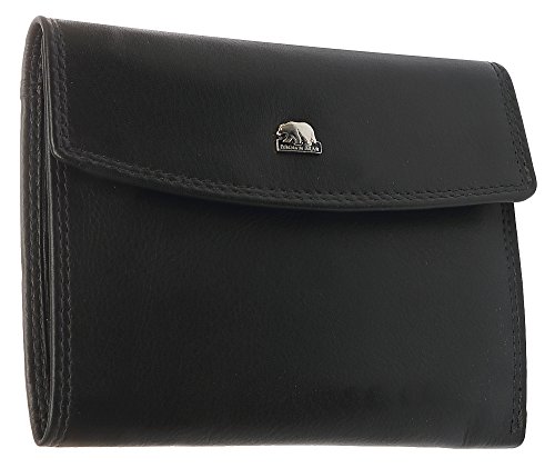 Brown Bear Leder Damengeldbörse, Farbe schwarz, außen sportliche Doppelnaht, mit Überschlag, linke Innenseite mit Klappe, 1 Kleingeldfach, 6 Kreditkartenfächer die doppelt bestückt werden können, 2 Banknotenfächer, 4 weitere Innen-Steckfächer und ein Einsteckfach auf der Außen-Rückseite für Belege, geschlossenes Maß ca. 12,5 x 10,5 x 2 cm, unverbindliche Preisempfehlung des Herstellers EUR 49,95 je Stück, BBCL 8010 sz