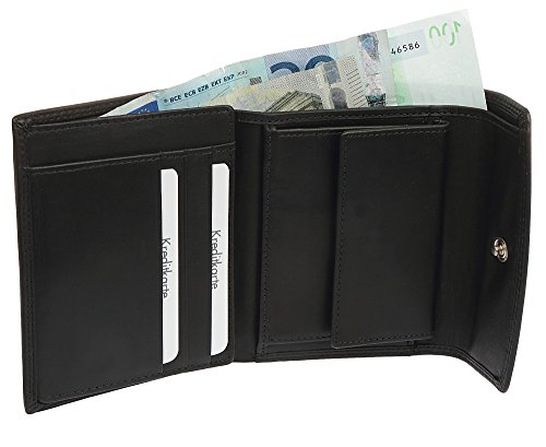 Brown Bear Leder Damengeldbörse, Farbe schwarz, außen sportliche Doppelnaht, mit Überschlag, linke Innenseite mit Klappe, 1 Kleingeldfach, 6 Kreditkartenfächer die doppelt bestückt werden können, 2 Banknotenfächer, 4 weitere Innen-Steckfächer und ein Einsteckfach auf der Außen-Rückseite für Belege, BBCL 8010 sz