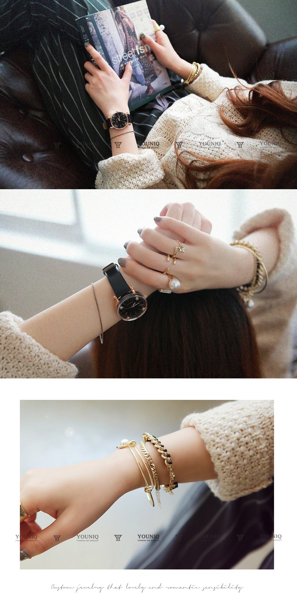 Simplicity has never looked as chic as beautiful jewelries by YOUNIQ. With a large typography decorating the centrepiece, a trace of a swiveling line one the surface creates an elegant silhouette for the accessory in bright lights.