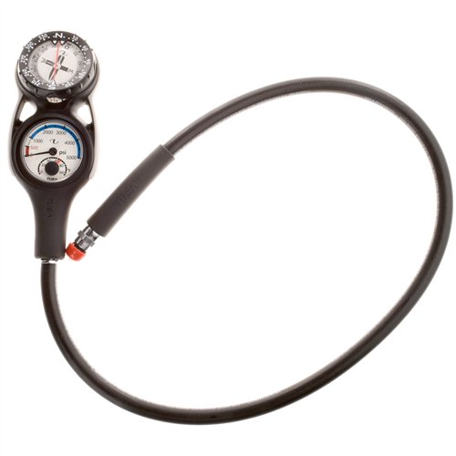 Studio : Tusa Publisher : Tusa Product Description New for 2012 is TUSA's Compass/Pressure Analog Gauge. The rugged easy to read pressure gauge has color coded pressure readout for added safety. The gauge measures pressure from 0 to 5,000 psi. The 0 to 500 psi section is colored in bright red to denote reserve air, the 1,000 to 5,000 psi section is color coded in blue. Pressure gauge is also equipped with a thermometer measuring temperature from 0 to 100 degrees Fahrenheit. The gauge is incased in an impact resistant boot with an eyelet for attachment of a lanyard or clip. HP hose is 7/16" threaded. The Compass is liquid filled for a smooth, fast reacting compass heading. Compass is equipped with both top and side scan reading for gun sight accuracy. The ratcheted rotating bezel has compass headings in 30 degrees numbered increments and indicator marks for every 10 degrees. Bezel has twin heading indicators for alignment of compass course, and a lubber line across the compass face. TUSA is the first company in the world to incorporate Lumi-Nova light storage dials. This groundbreaking innovation offers several times the brightness of conventional dials, as well as longer luminescence times. The entire face glows bright enough to make it ideal for night diving or diving in dark areas but contains no radioactive materials. Gauges come with a 12 month limited warranty. 0