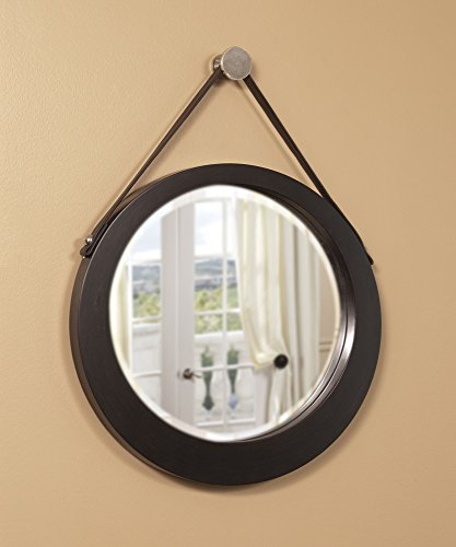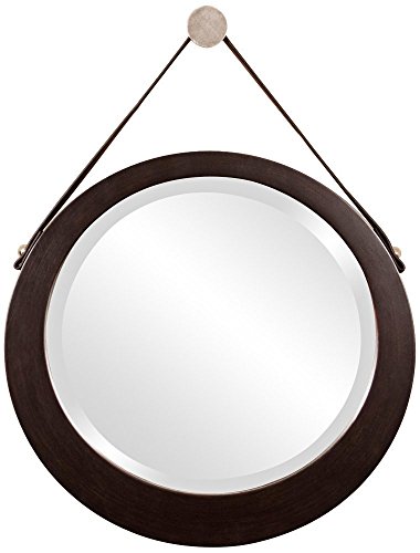 Howard Elliott 92013 Bloom Round Mirror with Lighter Brown Leather Hanging Strap, Deep Espresso Brown