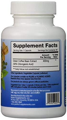 Studio : Perfect Supplements Publisher : Perfect Supplements Binding : Health and Beauty Product Description Green coffee beans have been receiving a lot of positive attention lately as an all-natural weight loss aid. Scientific research and human studies have suggested that green coffee beans have a natural ingredient called chlorogenic acid, which lowers the amount of glucose that is released into the body's bloodstream. Glucose is used for energy, and when glucose is in short supply the body uses stored-up fat cells instead. This process, known as thermogenesis, is a great help to weight loss. It also helps to lower blood pressure and boost the metabolism. Now, you're probably wondering why you aren't getting all these wonderful benefits out of your morning cup of Joe. That's because the process of roasting the beans removes the chlorogenic acid! Pure green coffee beans contain only a trace amount of caffeine, so you can get your boost of energy without those nasty, jittery side effects of a cup of coffee and still lose weight. What are the Benefits of Perfect Green Coffee? Perfect Green Coffee helps promote healthy weight loss, boost metabolism, prevent and alleviate high blood pressure, offer antioxidant protection against disease. 100% Fairly-Traded ~ Makes Perfect Green Coffee a Better Choice! Perfect Supplements prides itself on bringing only the purest food supplements, free from artificial flavors, fillers, or free agents. In addition, they ensure all of their ingredients are fairly-traded and grown without pesticides. Perfect Green Coffee is proud to support small farmers. Suggested Use Take 1-2 caps daily 30 minutes before breakfast or lunch with a full glass of water. As Perfect Green Coffee does contain trace amounts of caffeine, avoid taking the supplement late in the day in order to avoid trouble sleeping. 0