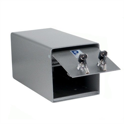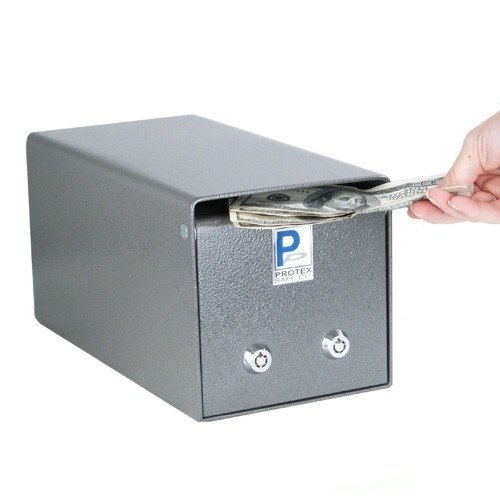 The perfect way to lock and secure suggestions, ballots, mail, money, rent checks and more.^Drop Opening: 5-3/4" (W) x 7/16" (H)^Saw-toothed baffle to protect slot.^Safe comes with two keys per lock. Tubular-style key lock with double "D" configuration.^Indoor use only!