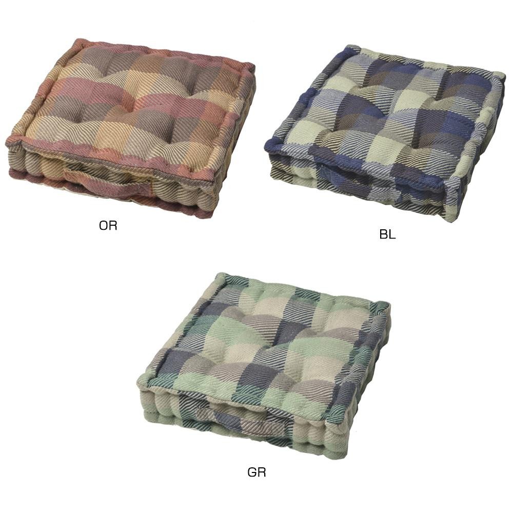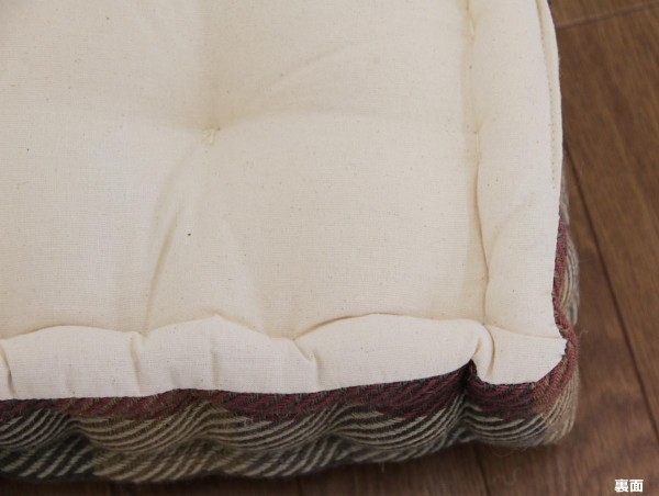 インド綿とウールが融合した「あたたかなタッチ感」と「風合い」が魅力の「merumo(メルモ)」シリーズ。中材がぎっしり詰まっていてボリュームもたっぷり。しっかりとした厚みで、お尻をサポートします。長時間座られる方にもおすすめです。背あてクッションやオットマンとしても活躍。持ち手付きなので、移動もラクラク。 |
