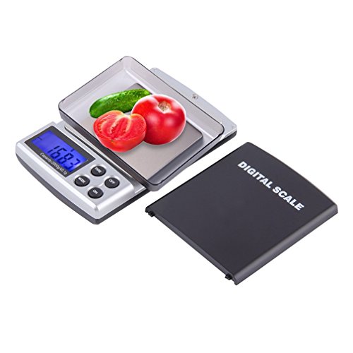 LESHP Auto Power off 2000G/0.1 Digital Pocket Scale, Jewelry Weight Balance Scale, Precision LCD with Optional Backlight, Black+Silver