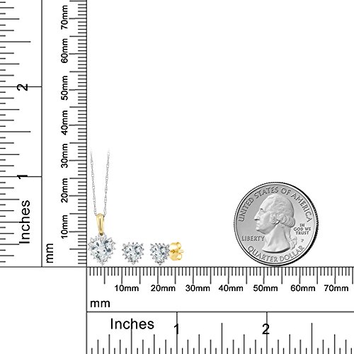 -. Title : 18K Two Tone Gold 1.25 Ct Heart Sky Blue Aquamarine Diamond Pendant Earrings Set