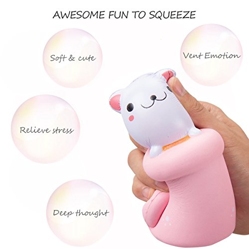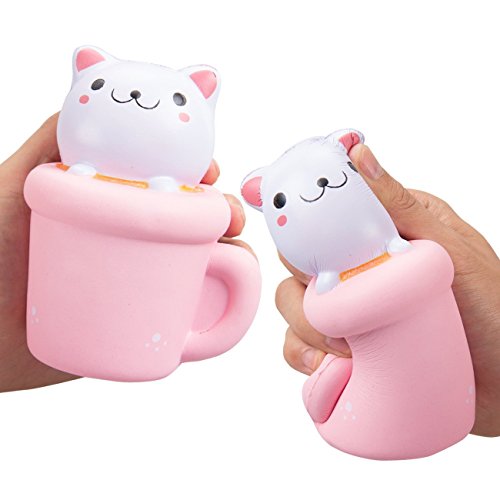 Function:This squishies slow rising cat and milk cup toys effectively help users reliease stress and bad emotions like upset,loneliness,anger,sadness...And it's also very fun to make it turn to various odd shapes in your hand!