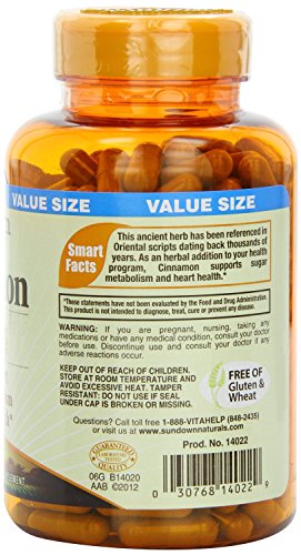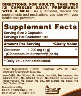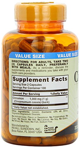 -. Title : Sundown Naturals Cinnamon 1000 Mg Capsules Value Size, 200 Count