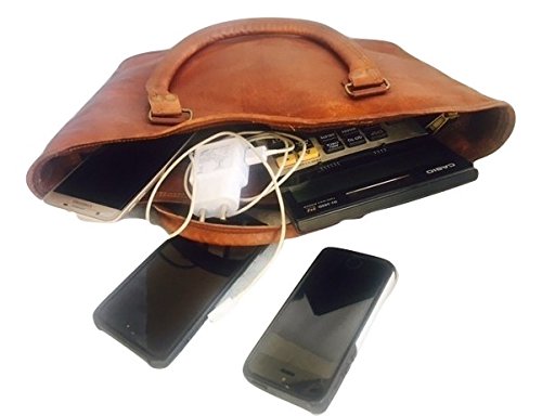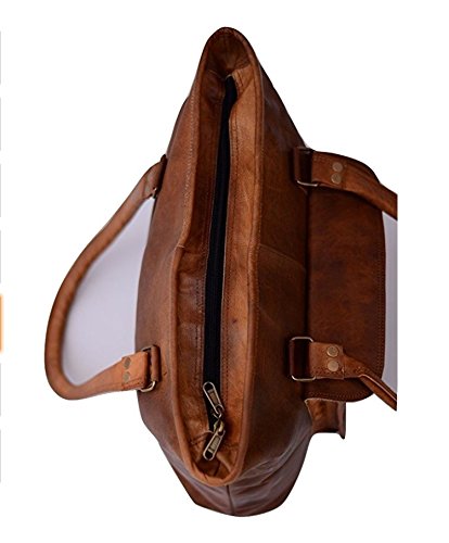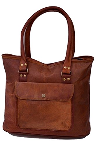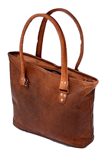 Handmade 16" Women Vintage Style Genuine Brown Leather Tote Shoulder Shoppers Bag Handmade Purse
