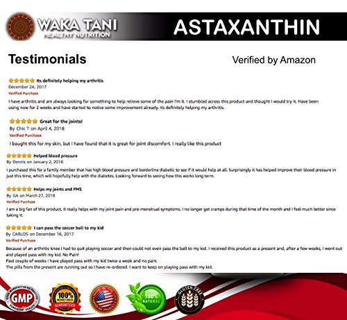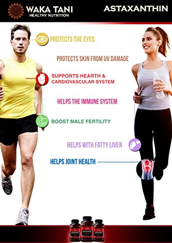 HIGH QUALITY & FULL GUARANTEE, Waka Tani Astaxanthin is Natural & Vegan product made from Haematococcus Pluvialis Microalgae, Made in USA, FDA registered, GMP Certified, Gluten Free, No artificial fillers, additives, chemicals or stimulants, Satisfaction Guarantee or 100% money back, if bought from us