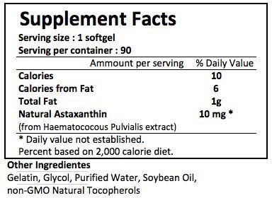 Waka Tani Astaxanthin 10 mg, is made with: gelatin glycerol, purified water, soybean oil, Non-GMO.