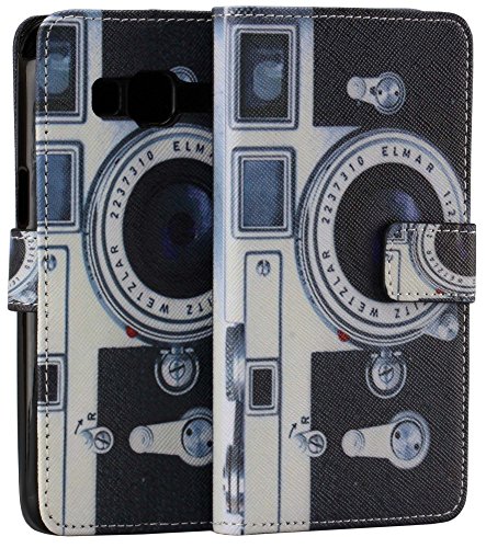 Galaxy Grand Prime G530 WIITOP Kickstand Flip Case Wallet Case Money Card Slot[Retro Camera] Premium Soft TPU Synthetic Leather Flip Cover