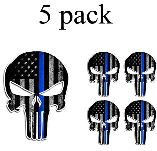 -. Title : 5 Pack THIN BLUE LINE PUNISHER SKULL American Flag Police Officer Blue Lives Matter Sniper Vinyl Decal Stickers Car Truck Sniper Marines Army Navy Military Jeep Graphic