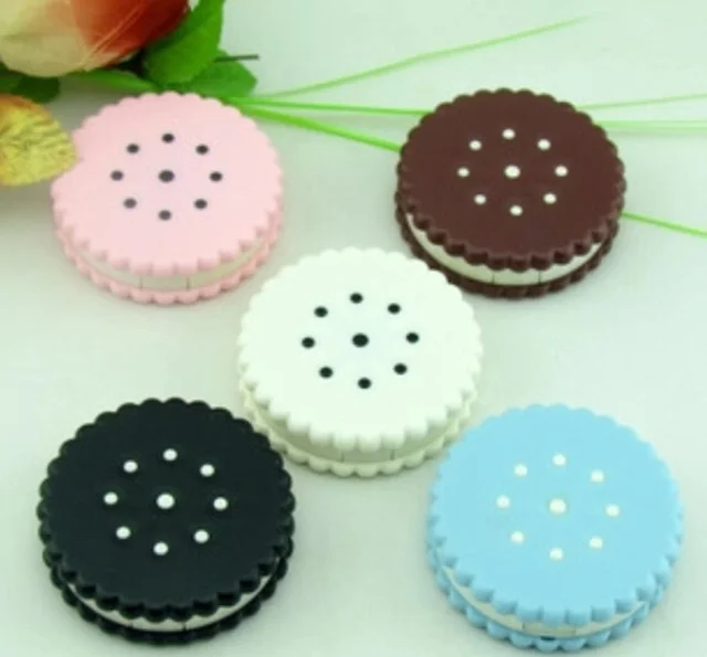 2016 뜨거운 판매 7.6*7.6*2.2 센치메터 만화 비스킷 모양 여행 귀여운 눈 콘택트 렌즈 케이스 상자 안경 액세서리 캔디 컬러
