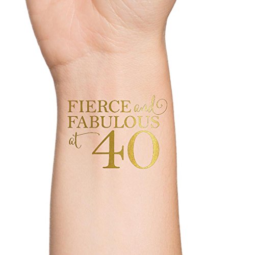Gold Fierce and Fabulous at 40 40th Birthday Party Temporary Tattoo (Set of 12)