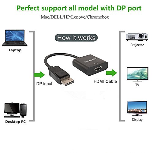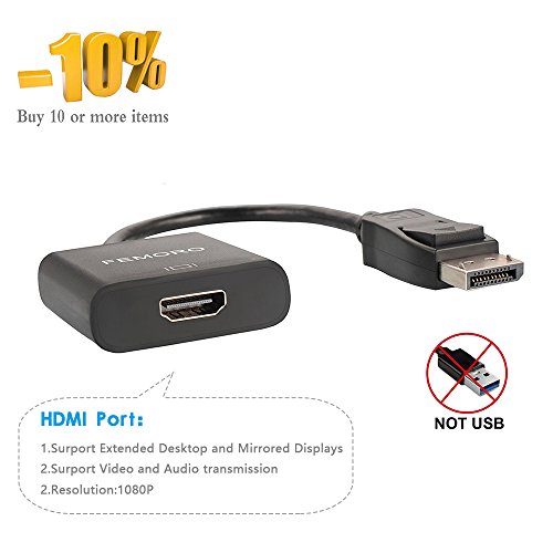 Display Adapter to HDMI Converter, FEMORO DP Displayport to HDMI Adapter Splitter Male to Female Audio Video Link 1080P Port Cable for DELL HP Lenovo HDTV in Black