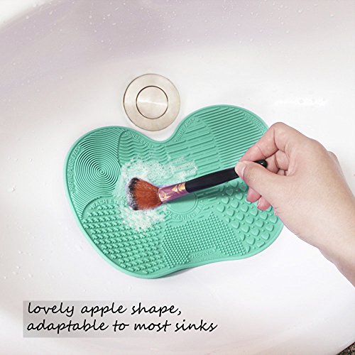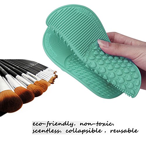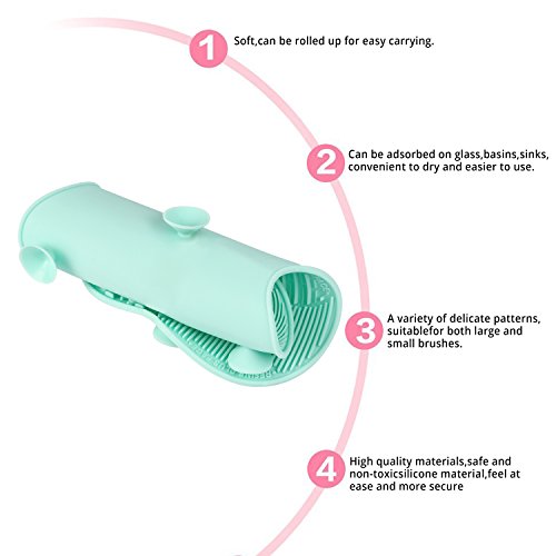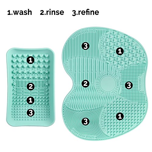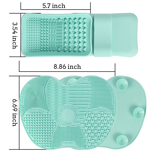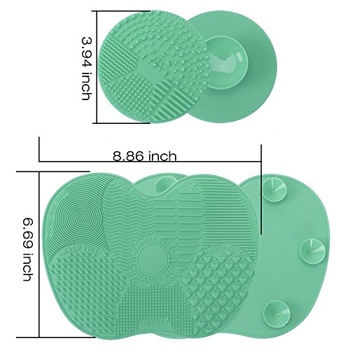 Makeup Brush Cleaning Mat, ESARORA Makeup Brush Cleaner Pad Set of 2 Cosmetic Brush Cleaning Mat Portable Washing Tool Scrubber Suction Cup (Green)