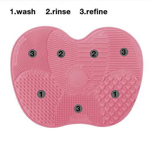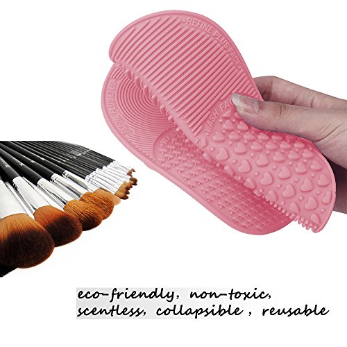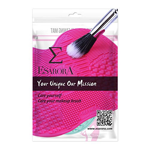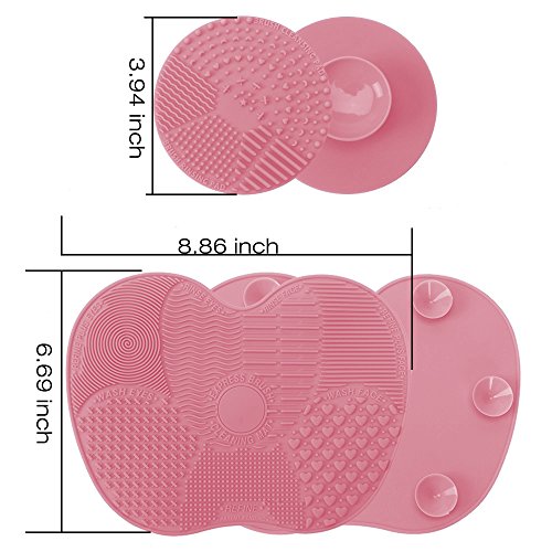 Makeup Brush Cleaning Mat, ESARORA Makeup Brush Cleaner Pad Set of 2 Cosmetic Brush Cleaning Mat Portable Washing Tool Scrubber Suction Cup (Pink)