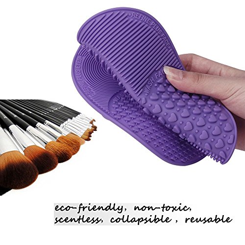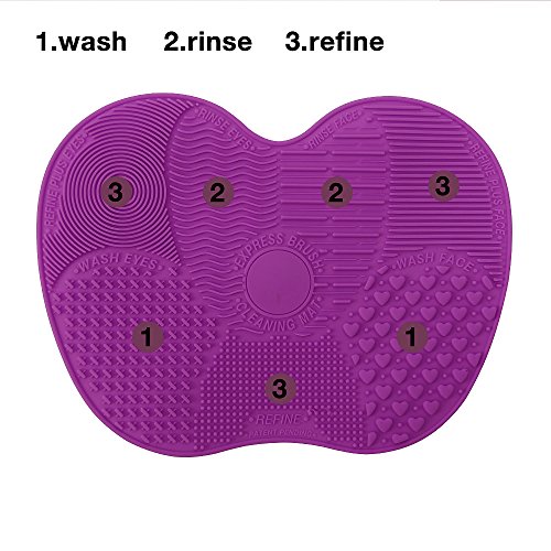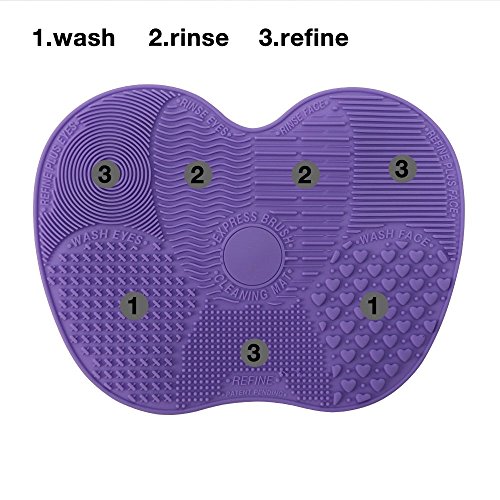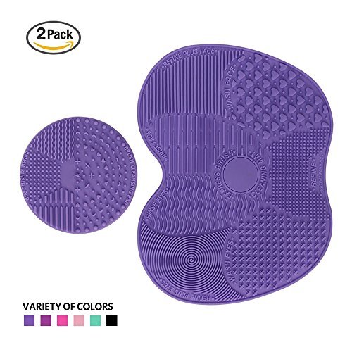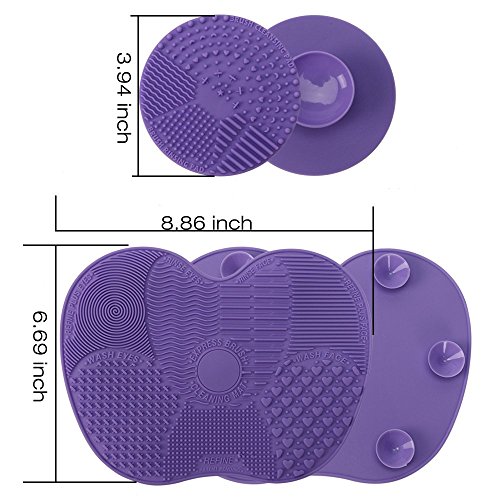 Makeup Brush Cleaning Mat, ESARORA Makeup Brush Cleaner Pad Set of 2 Cosmetic Brush Cleaning Mat Portable Washing Tool Scrubber Suction Cup (purple)