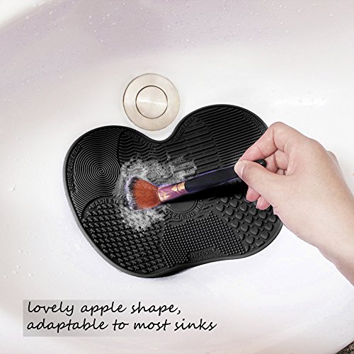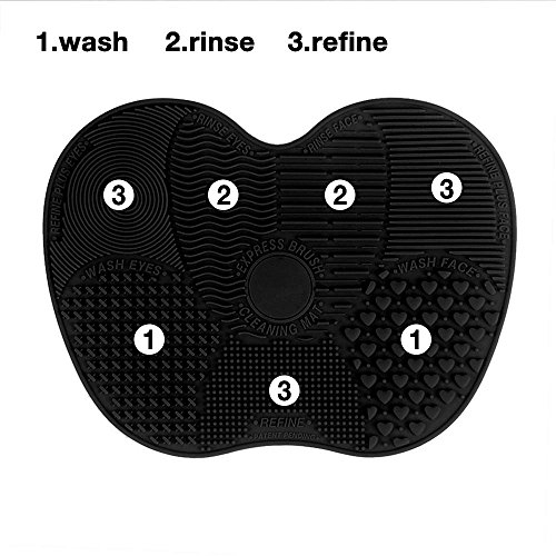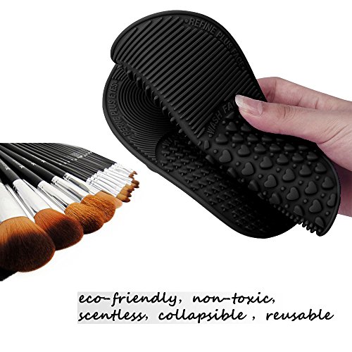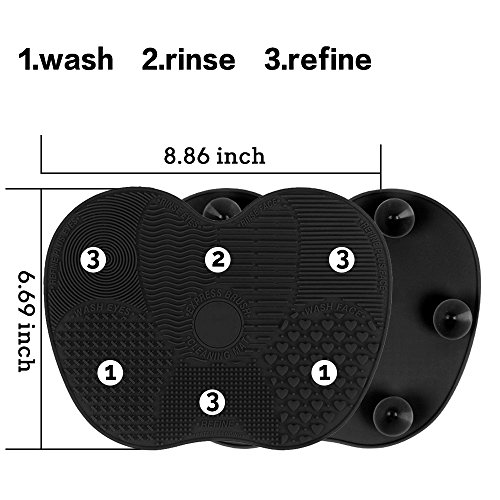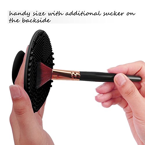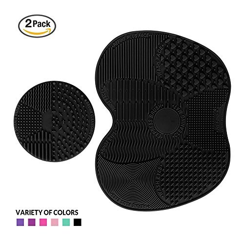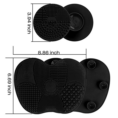 Makeup Brush Cleaning Mat, ESARORA Makeup Brush Cleaner Pad Set of 2 Cosmetic Brush Cleaning Mat Portable Washing Tool Scrubber Suction Cup (Black)