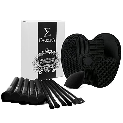 ESARORA Makeup Brush Set of 10 With Makeup Brush Cleaning Mat & Makeup Sponge