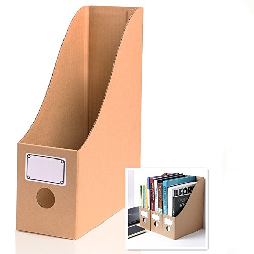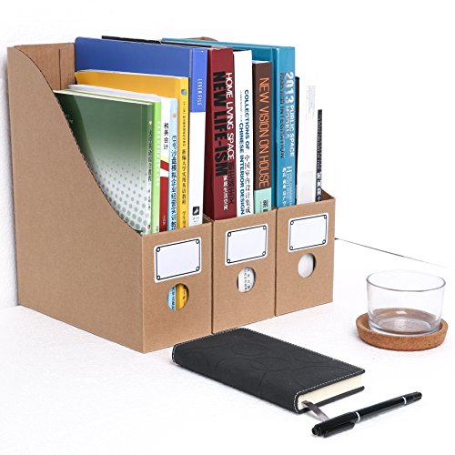YuXiang Magazine File Holder Book Storage Shelf Organizer Box 100% Recyclable Kraft Paper(Pack of 3)