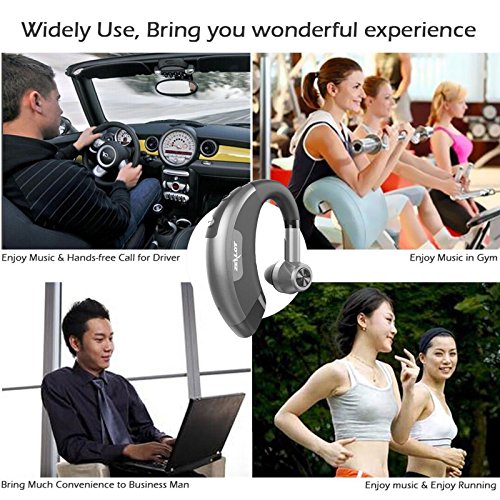 Wireless Earphone Bluetooth Headphone Handsfree Earpiece with Mic Car Headset Earhook Earpiece Hifi Noise Isolation Earbud for Right or Left Ear (Black With Grey)