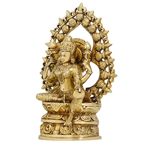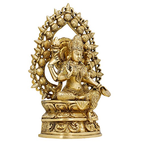 Statues And Figurines Goddess Laxmi Sculptures Hindu Home Decor In Brass 10.5 Inches, Weight 2.92 kg