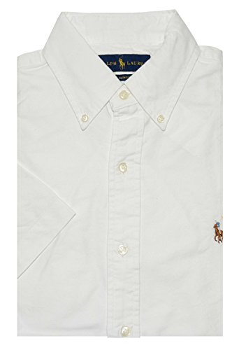 Ralph Lauren Men's Slim Fit Short Sleeve Oxford Shirt (Small, White)