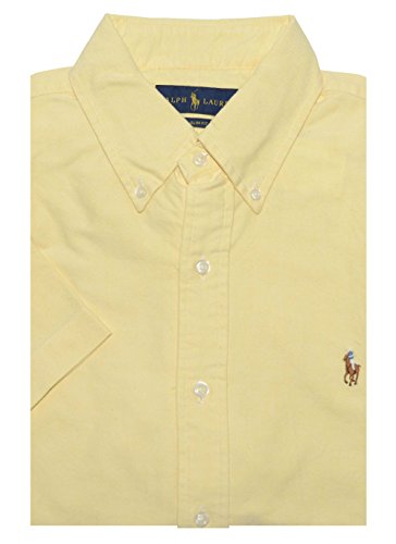 Ralph Lauren Men's Slim Fit Short Sleeve Oxford Shirt (Medium, Yellow)