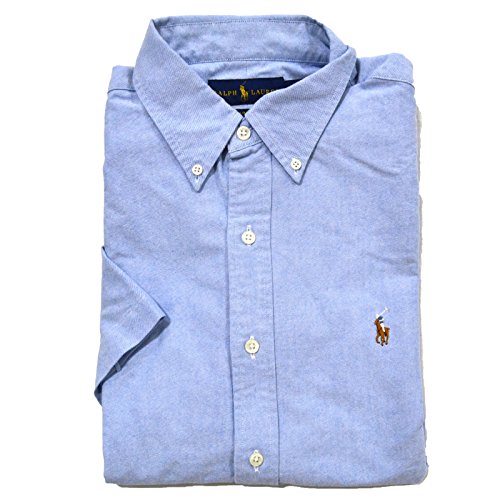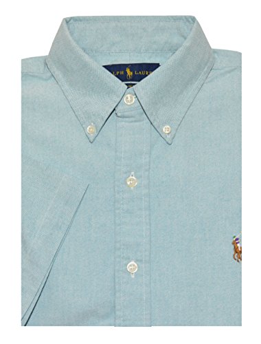 Ralph Lauren Men's Slim Fit Short Sleeve Oxford Shirt (X-Large, Cyan)