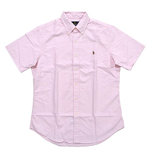 Ralph Lauren Men's Slim Fit Oxford Short Sleeve Striped Shirt (X-Small, Pink/White)