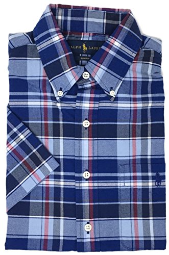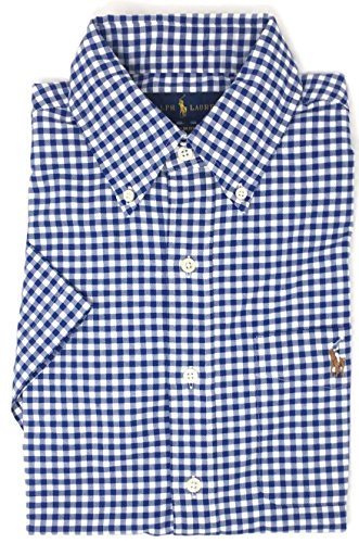 Ralph Lauren Men Slim Fit Oxford Button-Down Shirt (M, Chec.Blue)