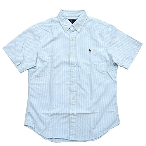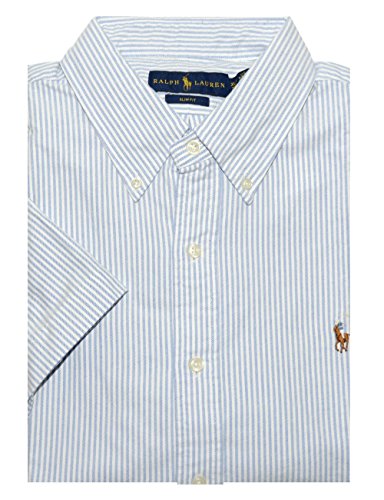 Ralph Lauren Men's Slim Fit Oxford Short Sleeve Striped Shirt (Small, Blue/White)