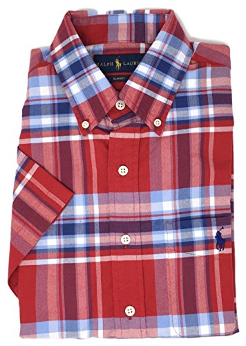 Ralph Lauren Men Slim Fit Oxford Button-Down Shirt (S, RedBlue.Multi)