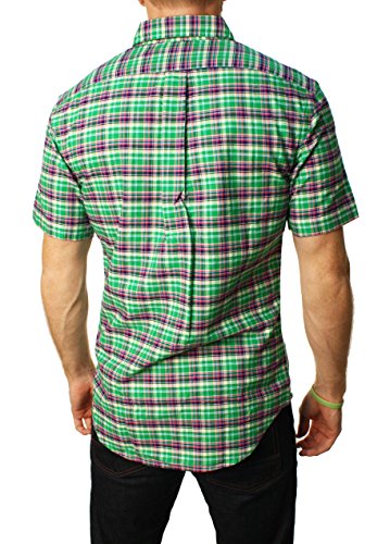 Ralph Lauren Men's Slim Fit Plaid Oxford Short Sleeve Shirt(Small,Green Plaid)