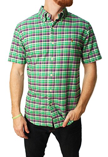 Ralph Lauren Men's Slim Fit Plaid Oxford Short Sleeve Shirt(Medium,Green Plaid)