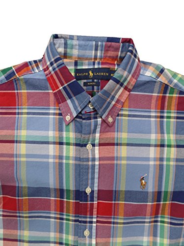 Ralph Lauren Men Slim Fit Oxford Button-Down Shirt (L, RedBlue.Multi)