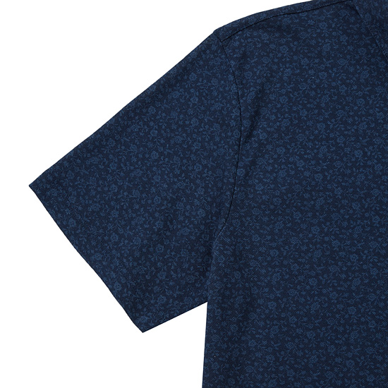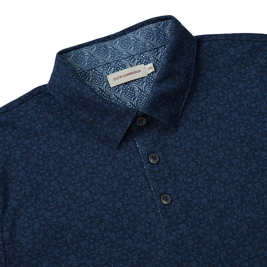 - 톤온톤의 플라워 패턴을 규칙적으로 적용한 남성 카라 티셔츠.