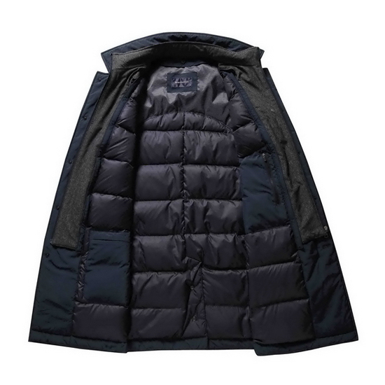 - 은은한 광택감이 묻어나는 솔리드 컬러 디자인의 남성 코트. - 부드러운 터치감의 폴리 혼방 소재에 스위스 섬유 기술로 인체 자체 열복사 기능의 KEEP HEAT 소재와 복원력이 우수하며 흡습방산성의 기능을 향상시킨 DIVO DOWN 충전재를 사용하여 보온성을 유지시켜줌. - 탈착이 가능한 이중 플라켓 디자인으로 변형 연출이 가능함. - 기본 카라 디자인에 이면의 배색 처리로 섬세한 마무리를 전해줌. - 등판 사이드 다트 라인을 적용하여 착장시, 슬림 FIT을 연출함. - 양 사이드, 인 포켓 디테일의 구성으로 간단한 소지품 수납이 가능함. - 플라켓 이면의 로고 불박 메탈 장식으로 브랜드만의 감각을 보여줌. - 밑단 스냅 버튼을 적용한 센터 벤트 디테일로 활동성을 전해줌. - 다양한 맨즈 아이템과 동절기 시즌의 세련된 룩을 완성시켜줌. * 판매원: 코오롱인더스트리(주)FnC부문 * 원산지: 베트남