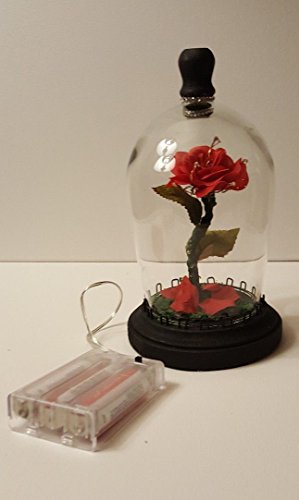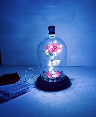 Preserved Rose enclosed within a glass dome with fallen petals and LED light and 2 extra roses