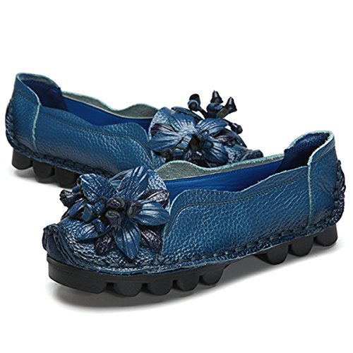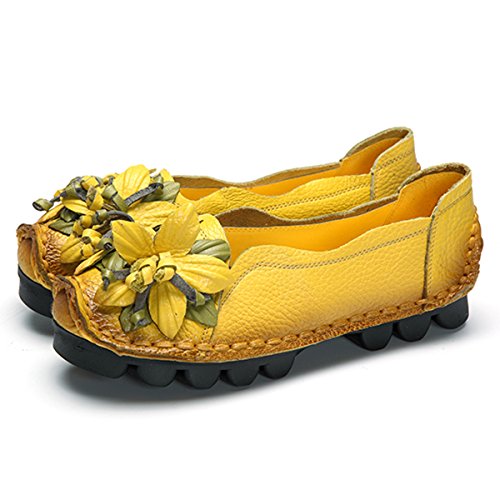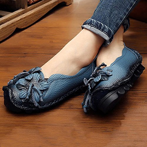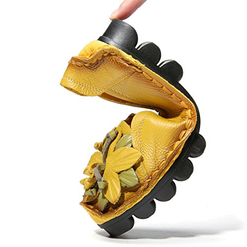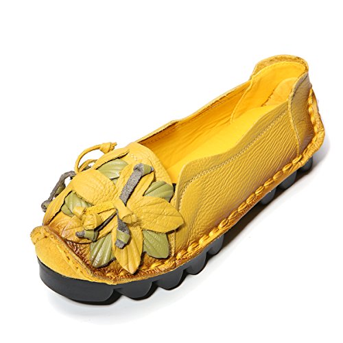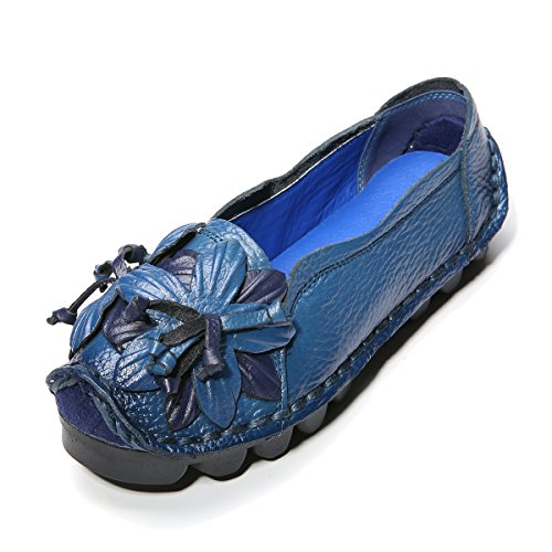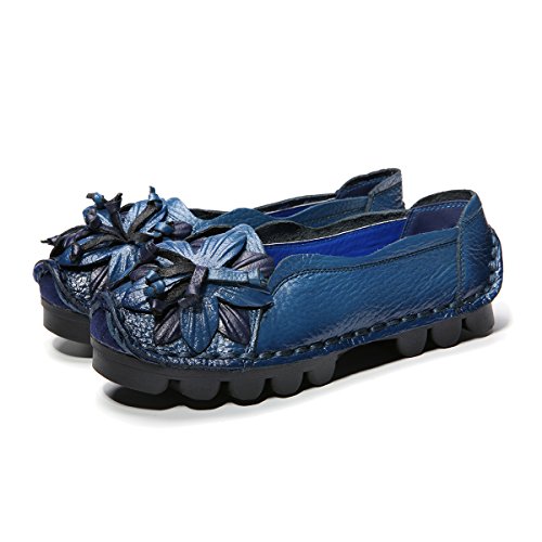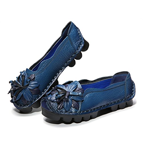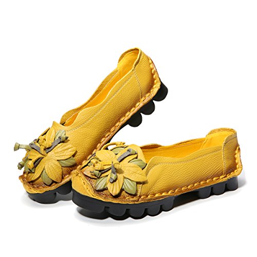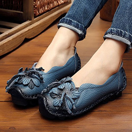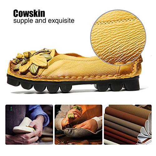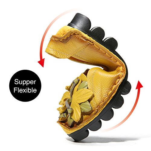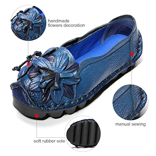 Outdoor Flat Casual Shoes, Tezoo Women's Genuine Leather Loafers - Handmade, Flower Style, Soft...