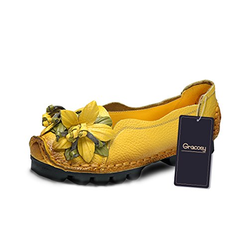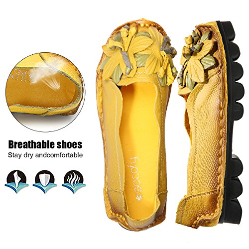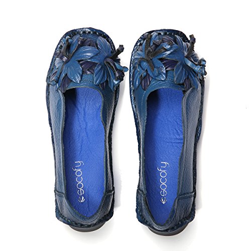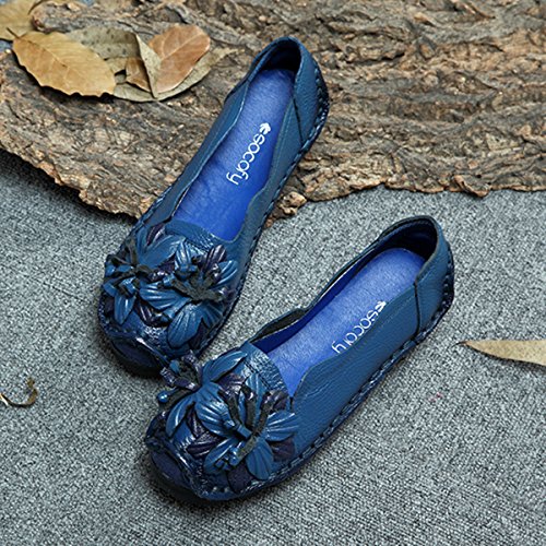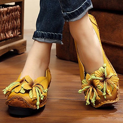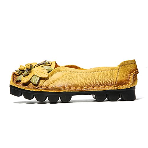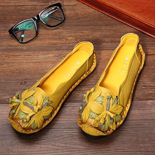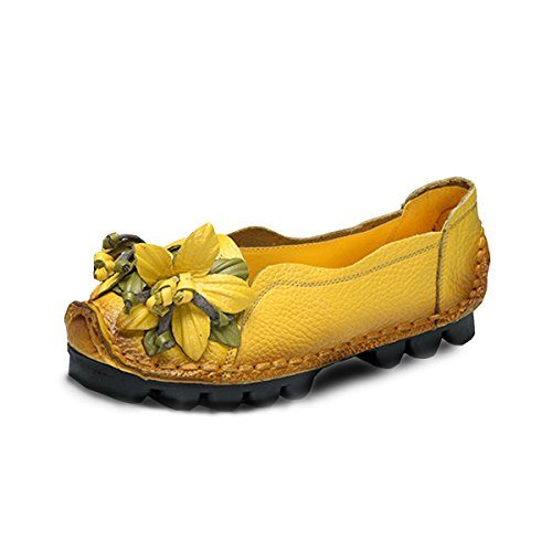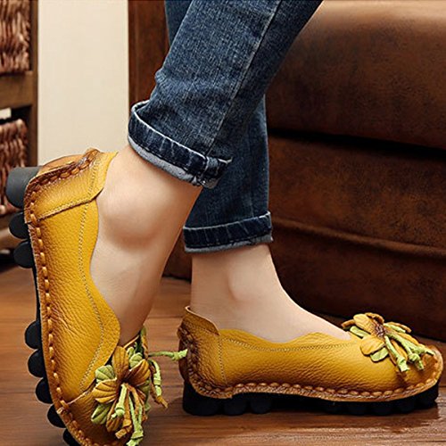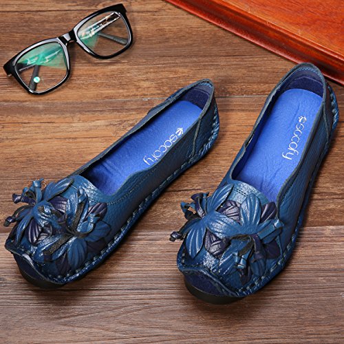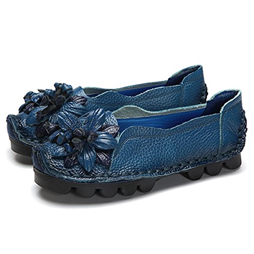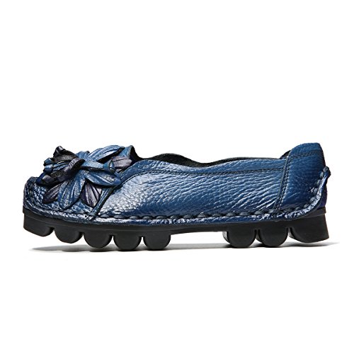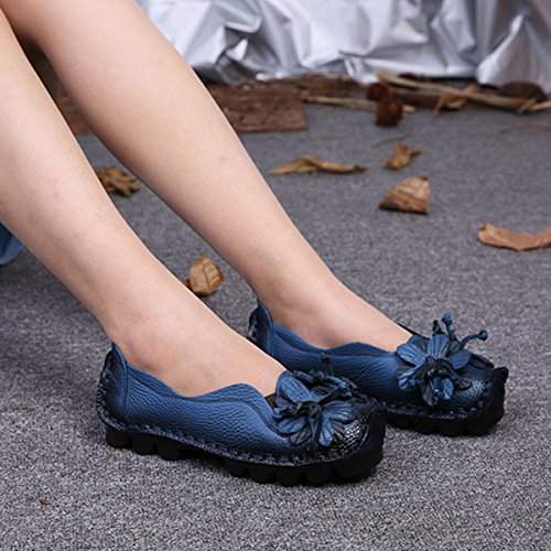 Outdoor Flat Casual Shoes, Tezoo Women's Genuine Leather Loafers - Handmade, Flower Style, Soft...