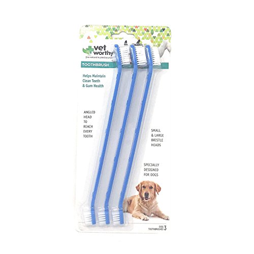Vet Worthy toothbrushes have angled heads to help clean hard to reach areas to maintain clean teeth and healthy gums. USE: To help maintain clean teeth and healthy gums. Regular brushing helps reduce plaque and bacterial build-up. DIRECTIONS: To introduce brushing to your dog, start by letting your dog taste a small amount of the dental toothpaste on the tip of your finger. Begin using your finger to gently rub the teeth and gums in a circular motion. Next, add a small amount of the toothpaste to the toothbrush and allow your dog to taste. Expose your dog's teeth and gums and gently start brushing with a back and forth motion. Praise your dog while brushing. FOR ANIMAL USE ONLY. NOT INTENDED FOR HUMAN USE. Keep out of the reach of children and animals. This product is not a toy. Only use soft-bristled toothbrushes and toothpaste that are made specifically for your pet. Inspect product regularly and replace if any part becomes worn, loose or detached. Do not use if product appears to be tampered with or is broken. Each Package Comes with 9 Units Double Sided Dog Toothbrush. Pictures may be magnified to show detail. For further information on size, color, conditions please refer to the item description or please ask a question before buying.Feature